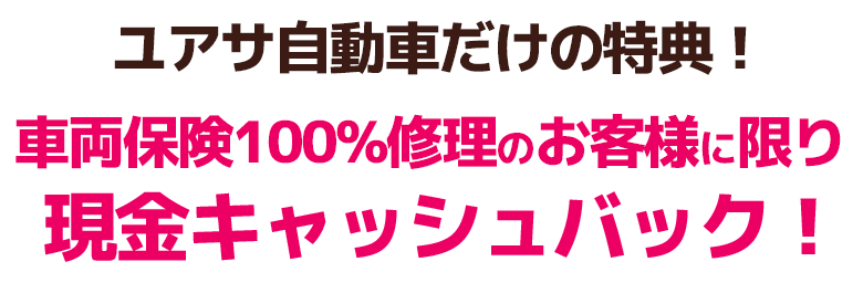 ユアサだけの特典!車両保険修理なら現金キャッシュバックがあります!